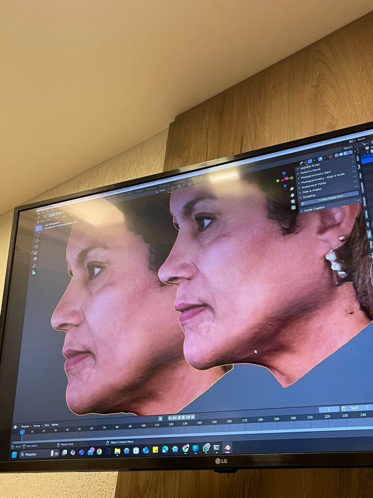 - Ainda, realizamos uma simulação 3D do seu próprio rosto a partir do escaneamento tridimensional da sua face.